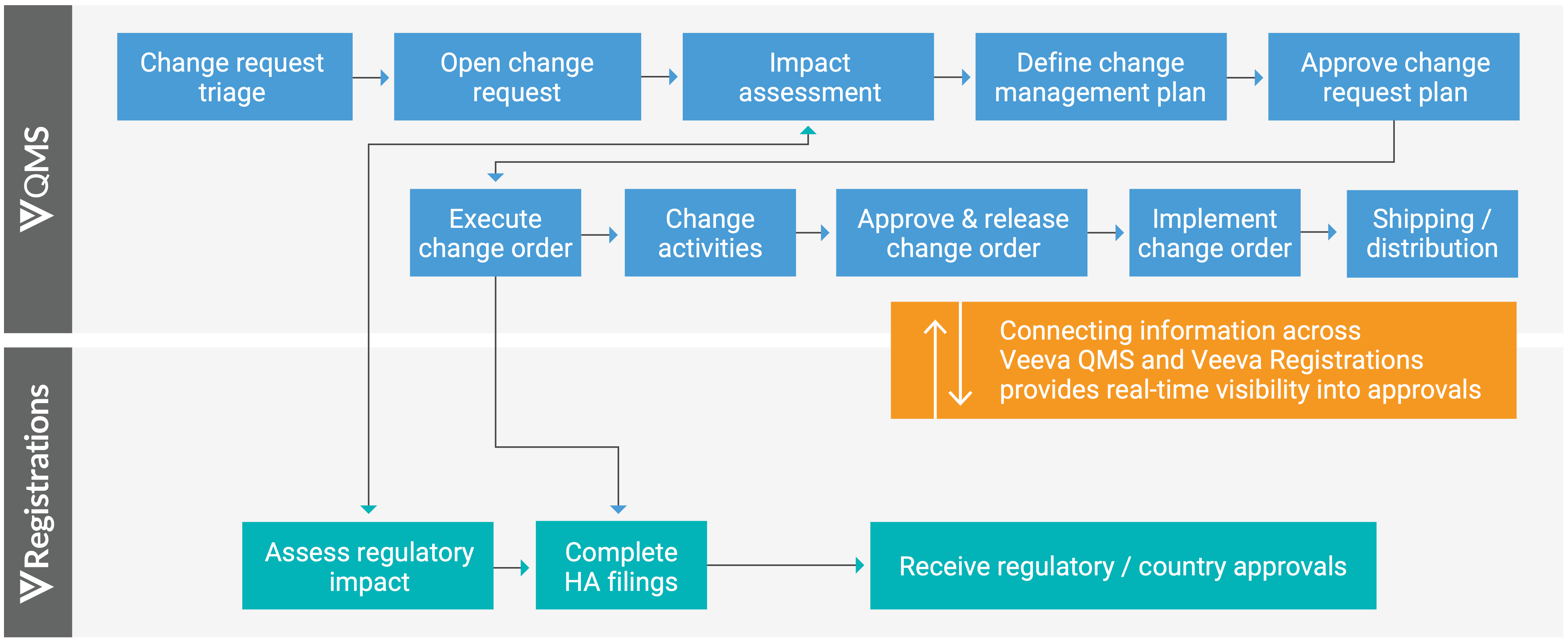 Change control is a complex, multi-step process that requires continuous collaboration between various stakeholders. Each year, biopharma companies initiate hundreds of changes to approved products, many of which have a regulatory impact. Regulatory teams assess those impacts through a separate variation management process and then must work with health authorities around the world to approve the subsequent changes. Currently, quality and regulatory teams manage these processes through disconnected emails and phone calls but that can compromise transparency and lead to critical errors, issues with compliance,