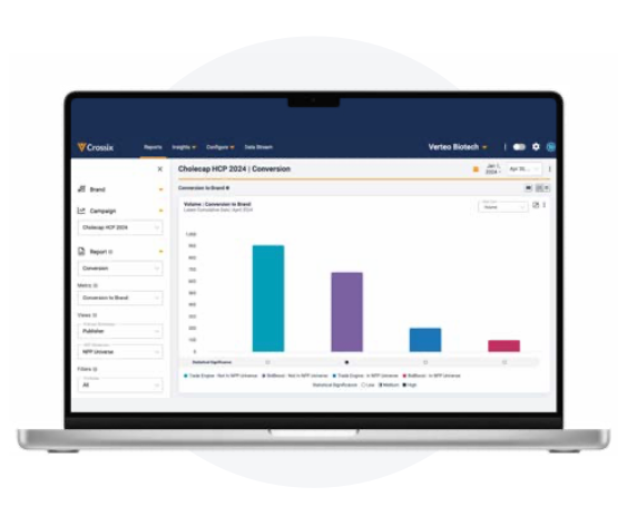 - Get visibility into the HCPs’ patients’ treatment and diagnosis history before and after seeing your ad or visiting the HCP website.