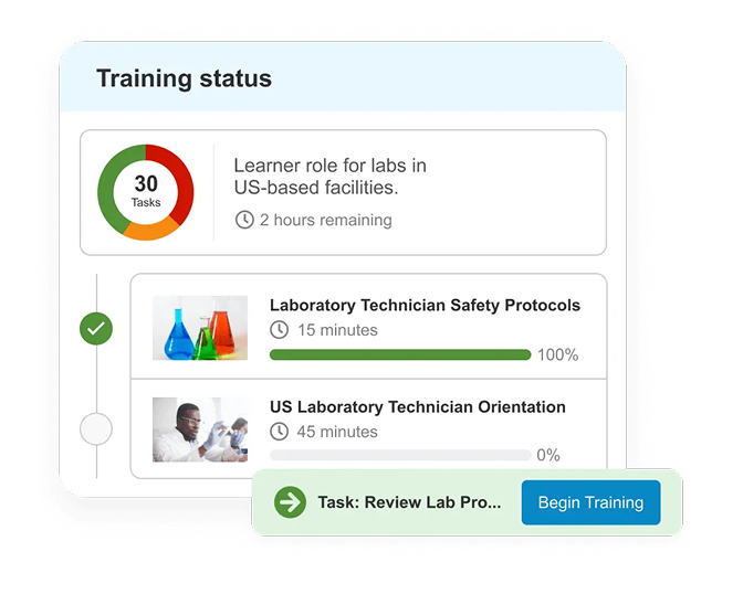 通过端到端的培训提高质量培训的效率和合规性。当变更发生时,自动验证资格、展示内容并触发培训。
