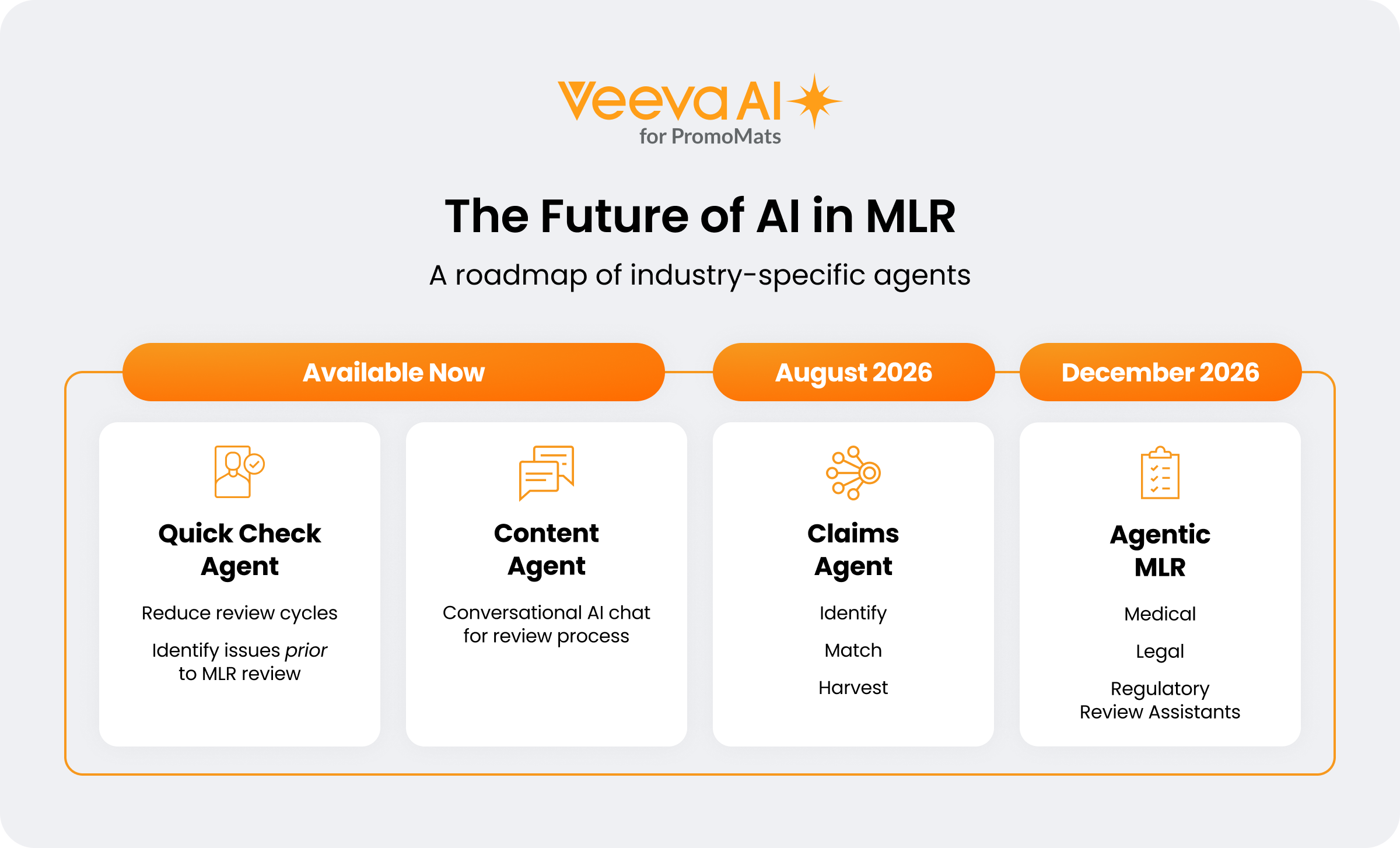 In the race to accelerate content delivery, a ‘wait-and-see’ strategy to harness AI equates to lost ground. Implementing the product now means realizing immediate benefits and mapping a vision of where the technology can go. Veeva’s roadmap includes more agents and innovation to further enhance MLR and content quality.