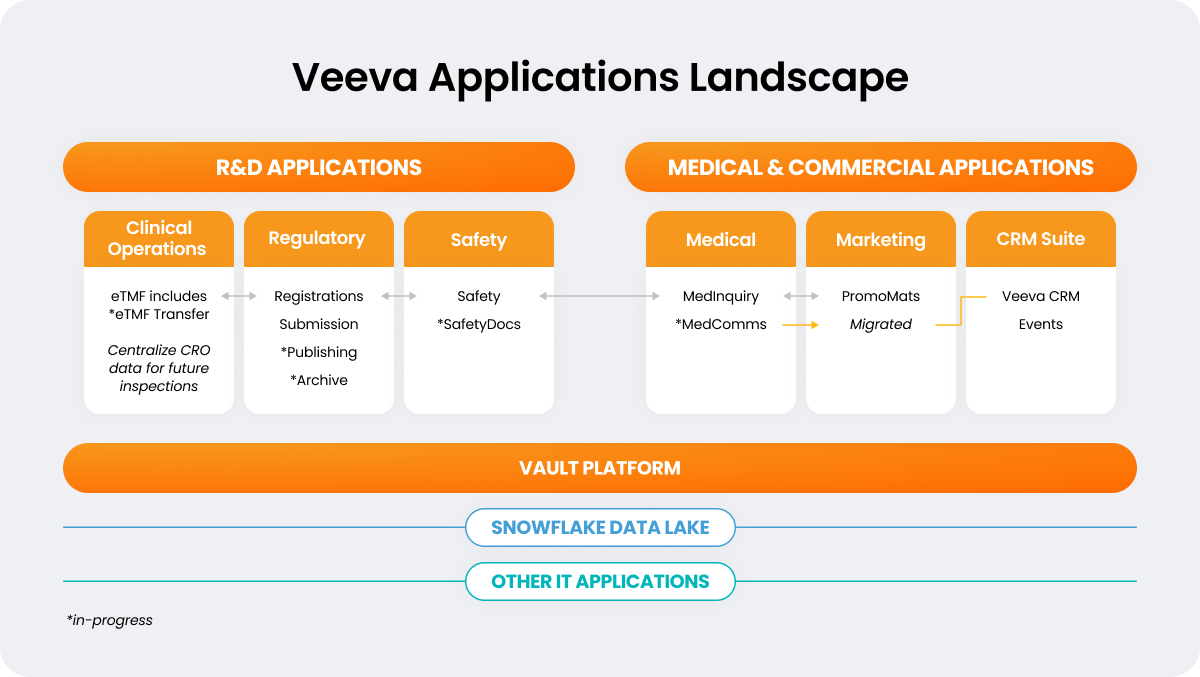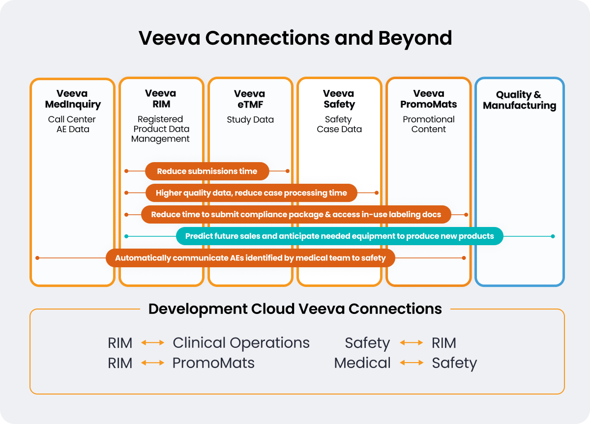 With six Veeva Vaults in place across Development Cloud and Commercial Cloud, OM Pharma’s IT team began connecting processes and data across the product lifecycle and functions in clinical operations, regulatory, safety, medical, and commercial.
