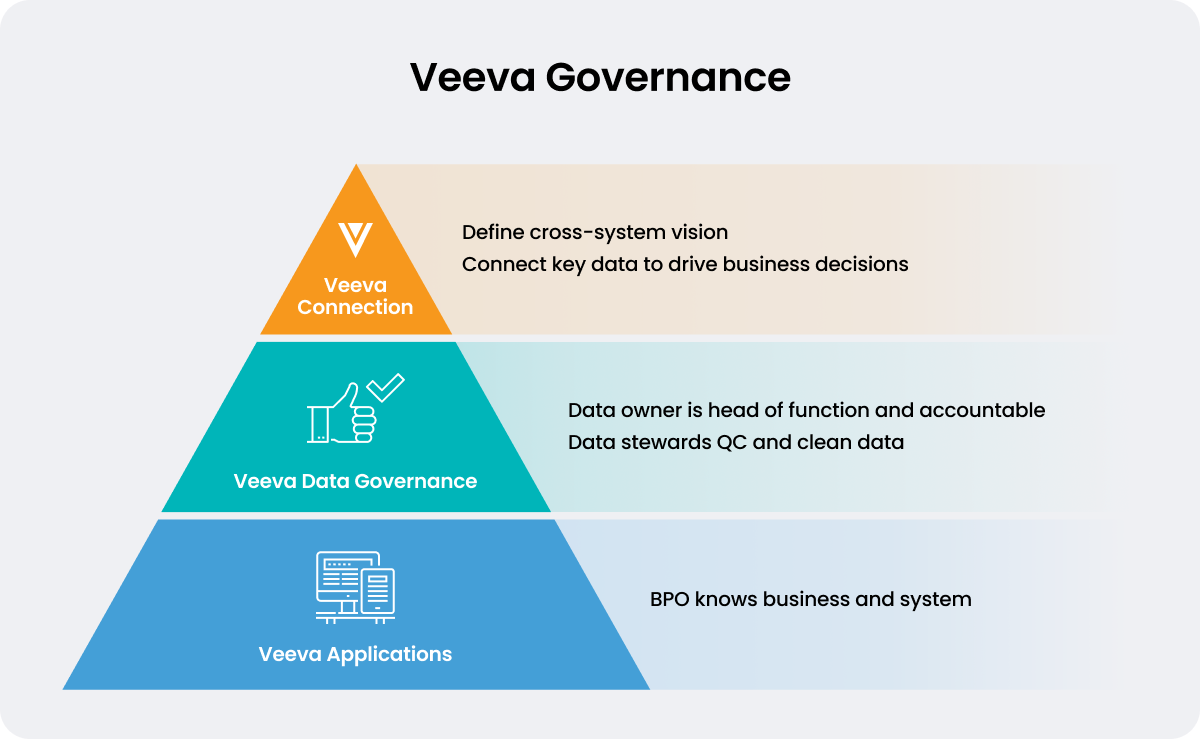 To achieve its vision for operational data excellence, OM Pharma established a data governance model. The company took a three-phased approach, including: cross-Veeva governance for Veeva applications; data governance across all applications; and cross-system governance to harmonize and connect data across the entire organization to support cross-functional processes.