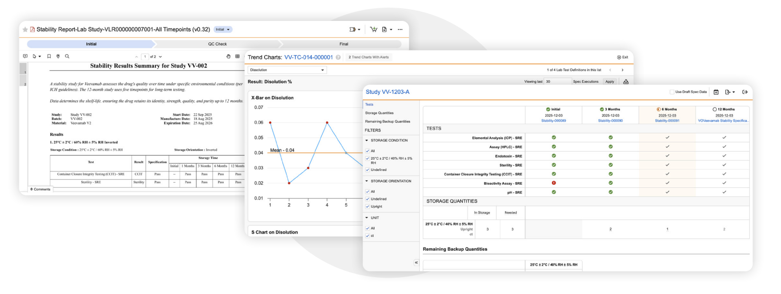 Design, execute, and oversee stability studies with timepoint pull compliance, digital sample results entry, regression analysis, review by exception, and one-click generation of Stability Timepoint and Study Summary reports.