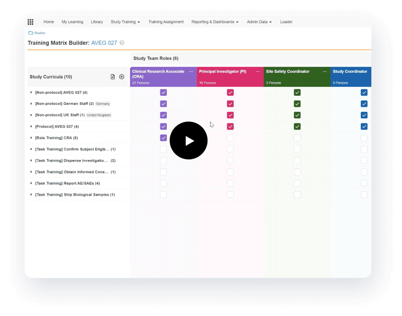 임상시험 의뢰기관, CRO, 시험기관을 위한 역할 기반 교육을 하나의 솔루션으로 생성, 할당 및 제공합니다.실태조사 준비상태 유지 보장