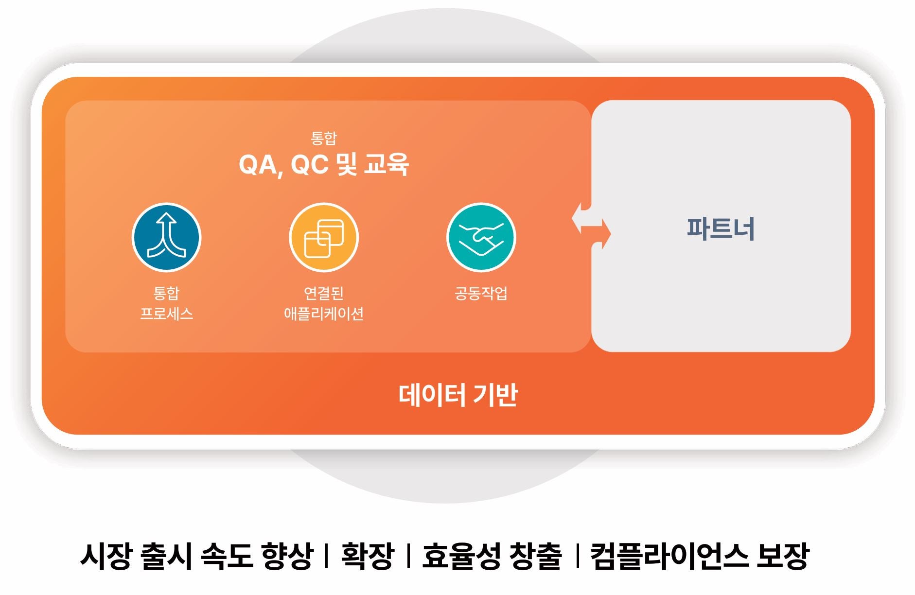 애플리케이션들을 통합합니다: 품질 관리 시스템 (QMS), 컨텐츠 관리, 교육 (LMS), 시험실 관리 (LIMS), 밸리데이션 관리 및 출하 승인.