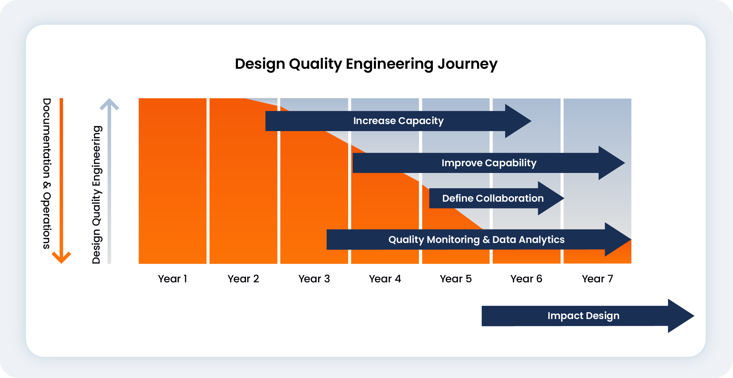 The DQE role moves quality farther upstream by positioning quality as influential partners in development, actively engaging between project milestones. To ensure success in this cross-functional partnership, Van Dreumel saw the potential to grow his DQE team and further train them on systems engineering and crucial soft skills, such as influencing and negotiation. He illustrated this partnership, “I stayed with them, actually helped with the testing, helped with writing the reports… that was a moment where people started to see me as a partner.”