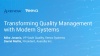 Increasing demand for next-generation therapies, global outsourcing, and greater regulatory scrutiny are driving the need for quality management transformation.